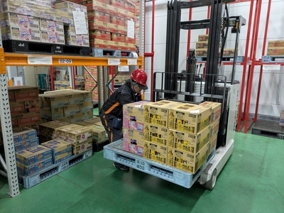 大きな倉庫の中に冷蔵庫(5℃)・冷凍庫(-25℃)・常温庫(寒くない部屋)の部屋があり、その中でみなさんがスーパーやコンビニエンスストアでよく見かける商品を振り分けるお仕事になります。入社後は資格支援制度で「フォークリフト」の免許取得も可能となり、仕事の幅もグンと広がります。
